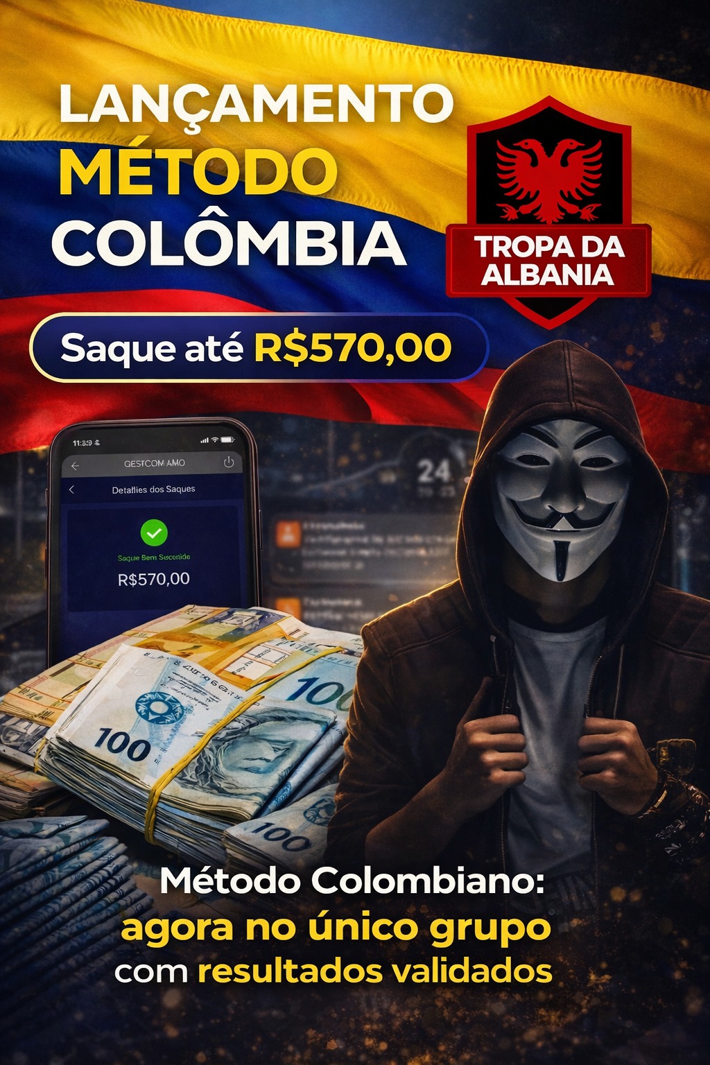 MÉTODO COLOMBIA, entre no grupo do telegram e descubra agora mesmo como se aproveitar de bugs de plataformas e conseguir fazer ao menos R$570 por dia, metodos comprovados simples e facil que ta forrando o bolso da galera, entre agora e venha fazer seu vale do dia!🇦🇱👺